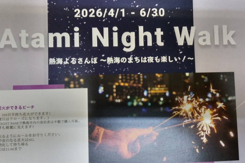熱海の夜の町をライトアップや手持ち花火で明るく楽しめるように、との趣旨で表題のイベントが開催されます。期間 4月1日(水)~6月30日(火)日中だけでなく夜間の熱海にもぜひお越しください。
