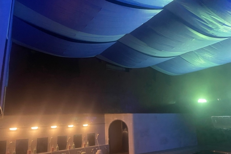 大浴場の天井のドレープを新しくトリコロールカラーに致しました。ちょっと海底にいる感じが・・・。 ゆっくりと自家源泉の温泉に入って下さい。